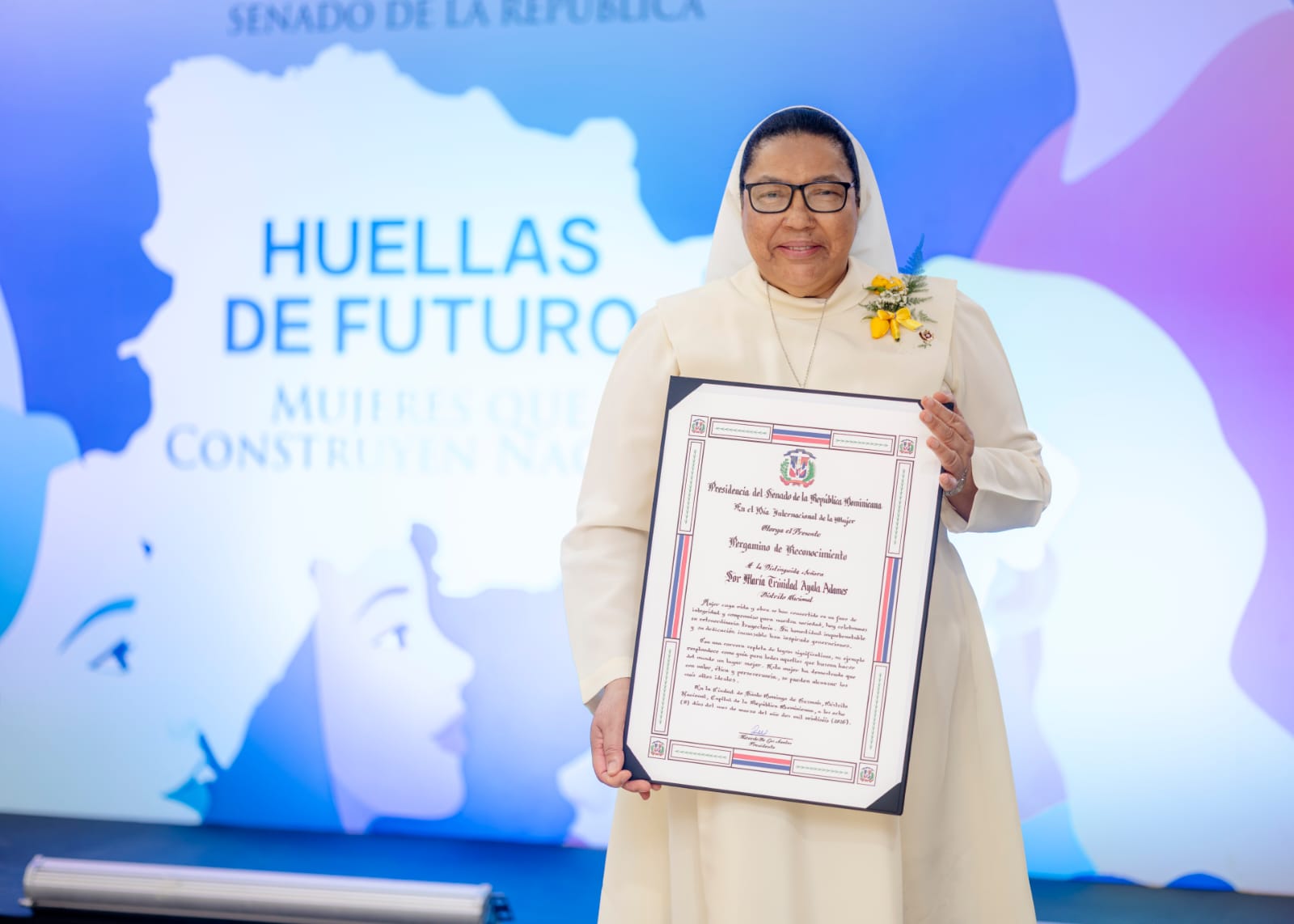 “Reconocemos en sor María Trinidad Ayala Adames una verdadera huella de futuro, porque su servicio ha devuelto dignidad y esperanza a nuestra nación”, se expresó en la semblanza presentada durante la ceremonia.